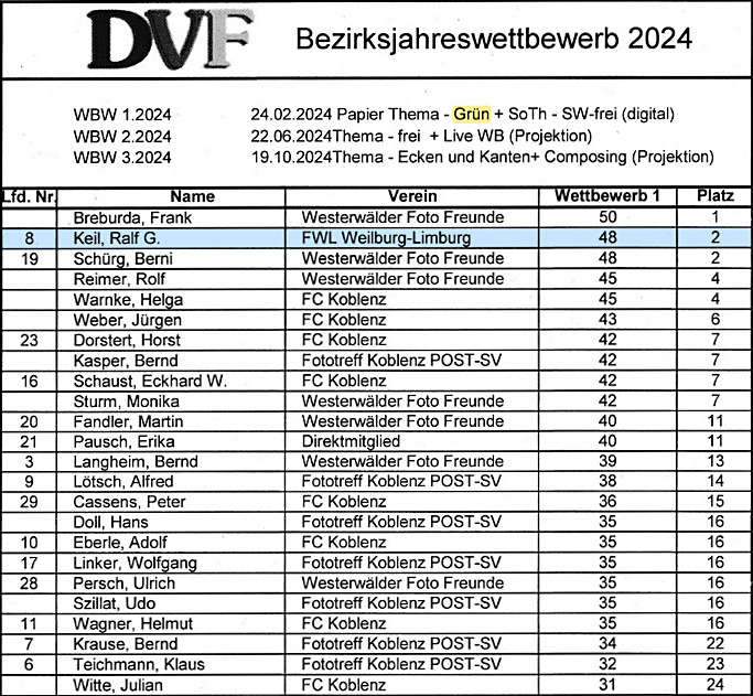 den Juroren hätte mehr sein können. Ralf hatte das beste Einzelbild bei "Grün", einen TOP-Punkt und insgesamt